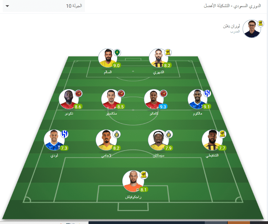 التشكيل المثالي للجولة العاشرة في الدوري السعودي