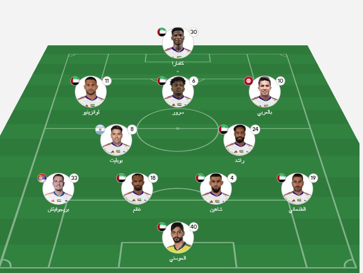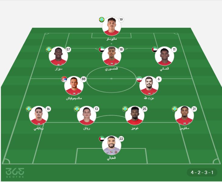 خط الدفاع: بريجوفيتش، عبد الله غانم، شاهين عبدالرحمن، خالد الظنحاني.
